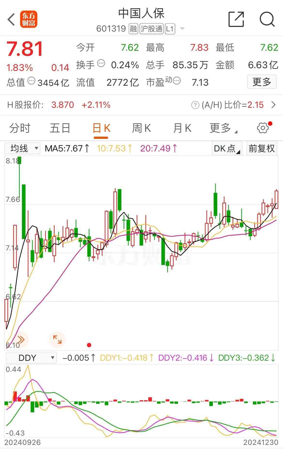 (3.)中国人保(601319),流通市值:2772亿元,2024年以来涨幅:66.88 %。