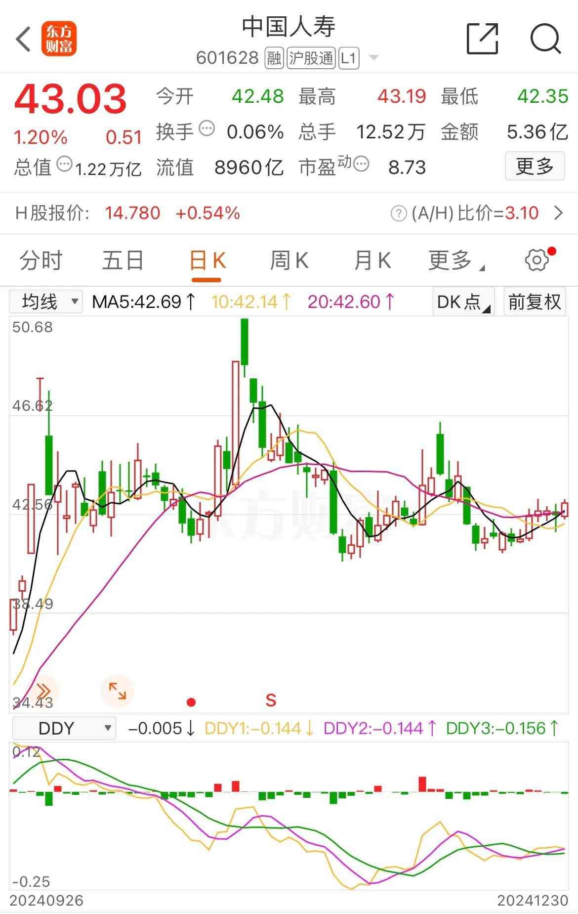 (4.)中国人寿(601628),流通市值:8960亿元,2024年以来涨幅:55.23 %。