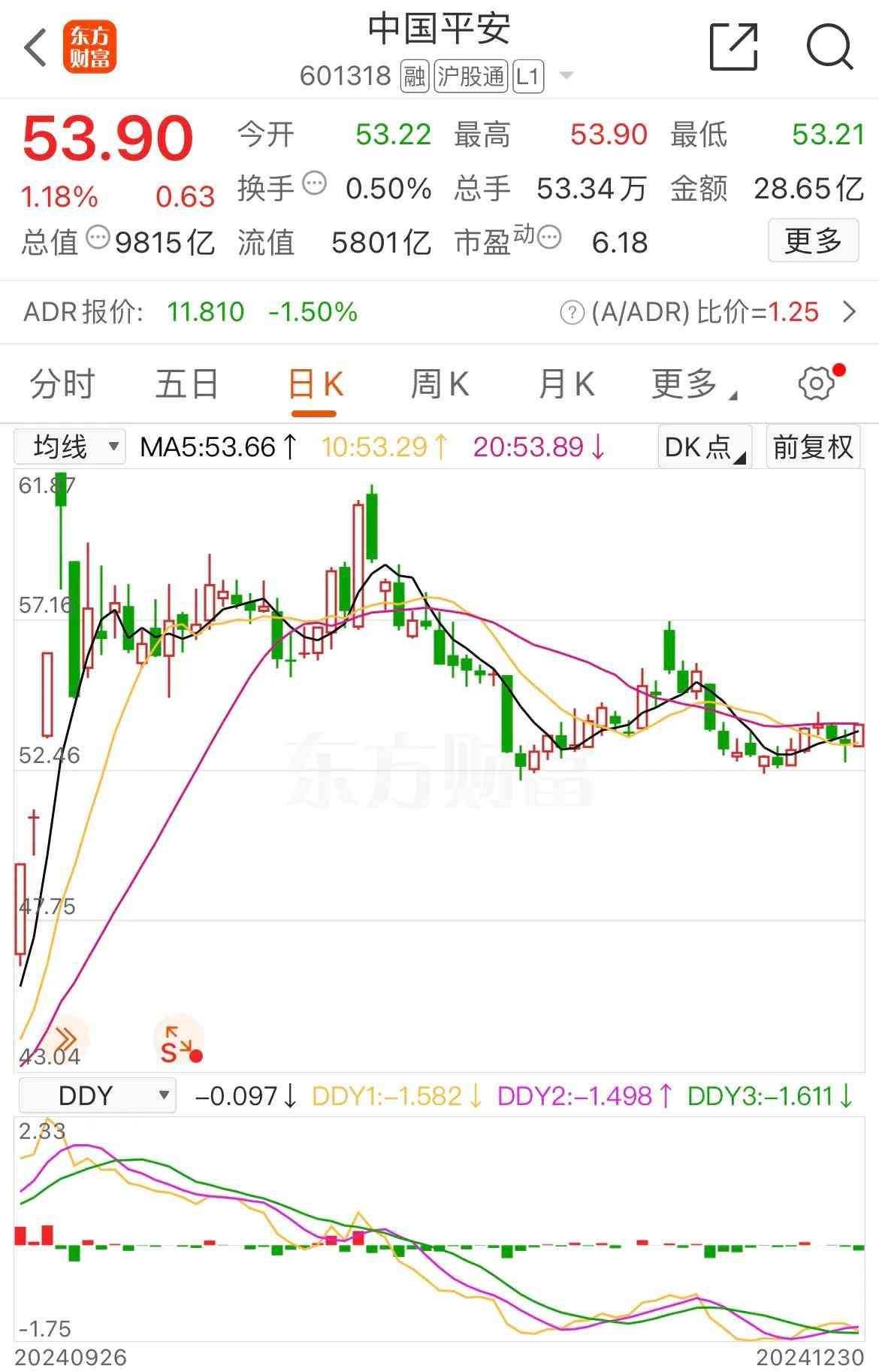 (6.)中国平安(601318),流通市值:5801亿元,2024年以来涨幅:42.33 %。
