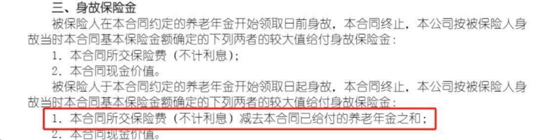 如果开始领取养老金后退休,身故后能拿回的钱是:已交总保费减去已经领取的钱,或者是现金价值,两者最大的。