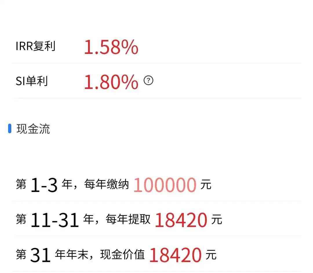 比如说首期10万保费,对应的年化收益率是4.2%,放1个月,