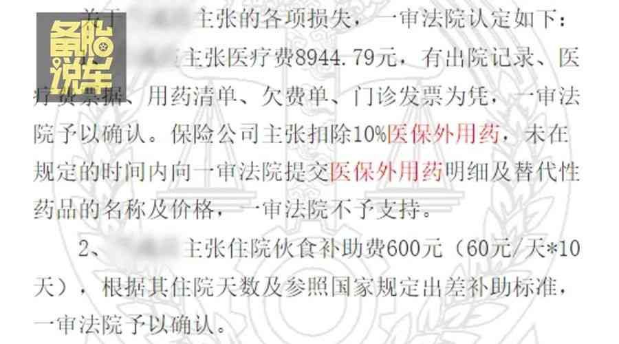 比如说淮安市中级人民法院5月份的一个终审案件:保险公司说,赔偿的医疗费里面,要扣除10%的医保外费用。