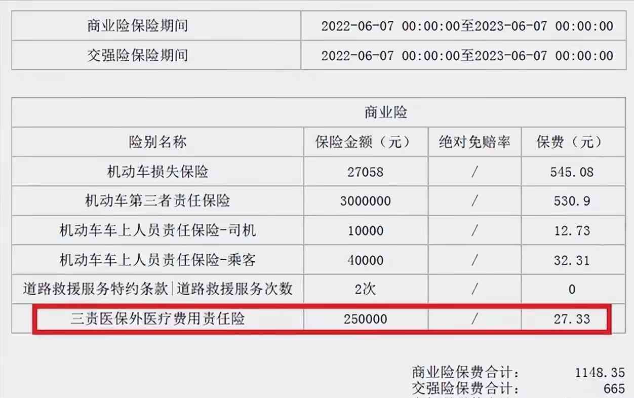 不过值得一提的是,最近这几年,三者险推出了医保外用药责任险,这属于附加险种,有的销售为了业绩,可能会推荐车主购买,费用根据保障额度来定,几十元到几百元都有。