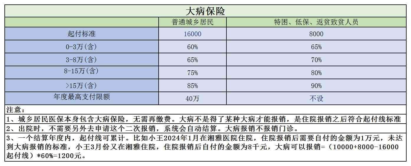 经常听到大家讲,买了4元的居民医保或者新农合,去这里看病不能报销,去哪里看病不能报销,城乡居民医保到底能享受哪些医保报销待遇,小编以湖南为例给大家整理好了,包含起付线、报销比例、支付限额等。