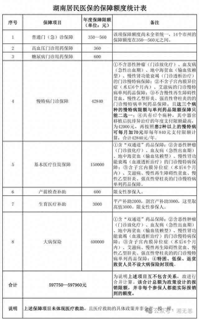 在今年7月初,我省便已正式推出《湖南居民医保的保障额度统计表》,对居民医保普通门(急)诊保障、高血压门诊用药保障、糖尿病门诊用药保障、慢特病门诊用药保障、基本医疗住院保障、产前检查补助、生育医疗补助、大病保险等各方面作出清晰梳理。