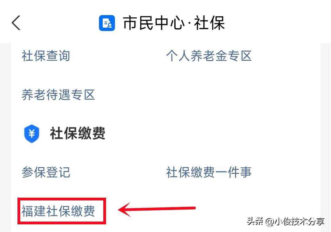 紧接着就会进入到社保页面,在这里我们可以看到各种功能,我们依次往下滑动,找到社保缴费这一项,接着点击【福建社保缴费】,由于我这里是福建地区,所以显示的就是福建社保缴费,这个根据你所在的位置自动识别,我们点击就可以了