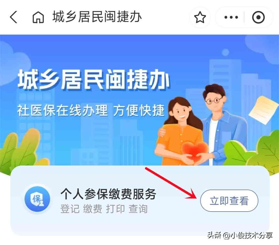 点击之后,就会跳转到【城乡居民闽截办】页面,在这边我们点击【个人参保缴费服务】后面的【立即查看】