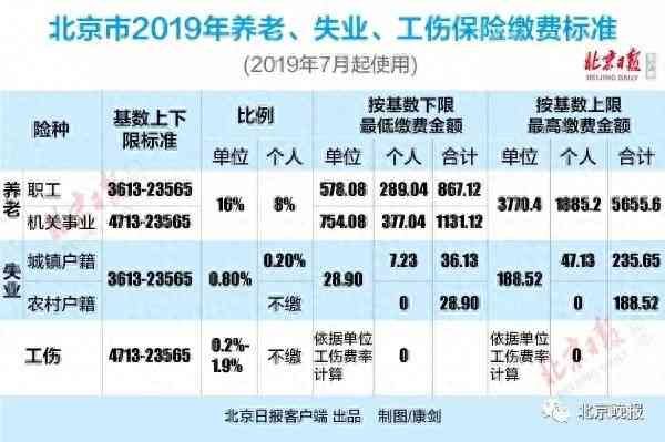 随着本市2018年全口径城镇单位就业人员平均工资的发布,新的社保缴费基数上下限也随之确定。自2019年7月起,城镇职工基本养老保险、失业保险缴费基数下限标准为3613元,上限标准为23565元;工伤保险缴费基数下限和上限标准为4713元、23565元。