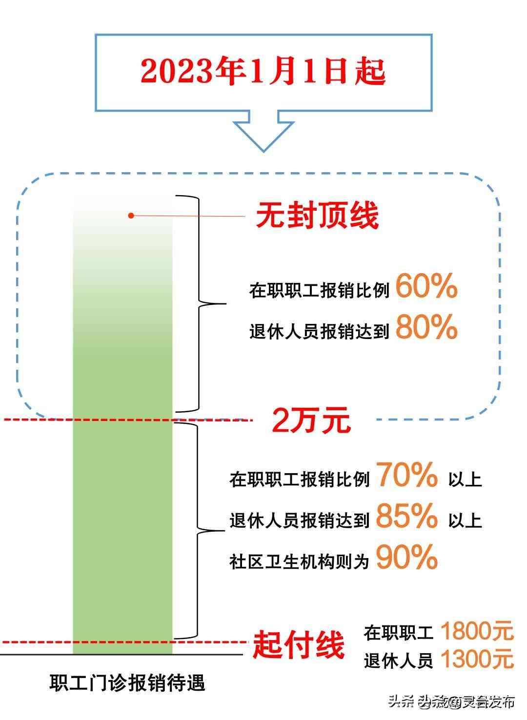 1、2023年起,职工医保门诊报销,不再设置封顶线。