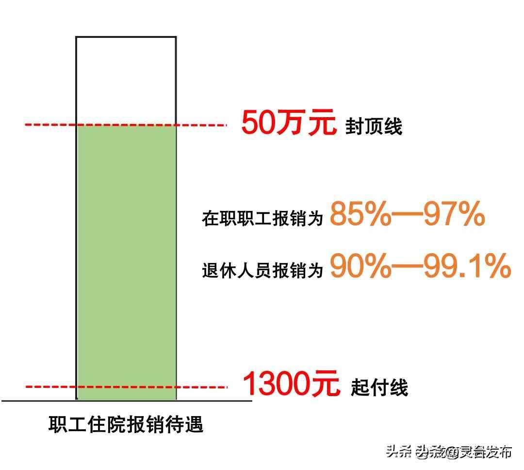 在职职工住院报销比例在85%以上,退休人员住院报销比例在90%以上,最高可达99.1%,住院封顶线为50万元。