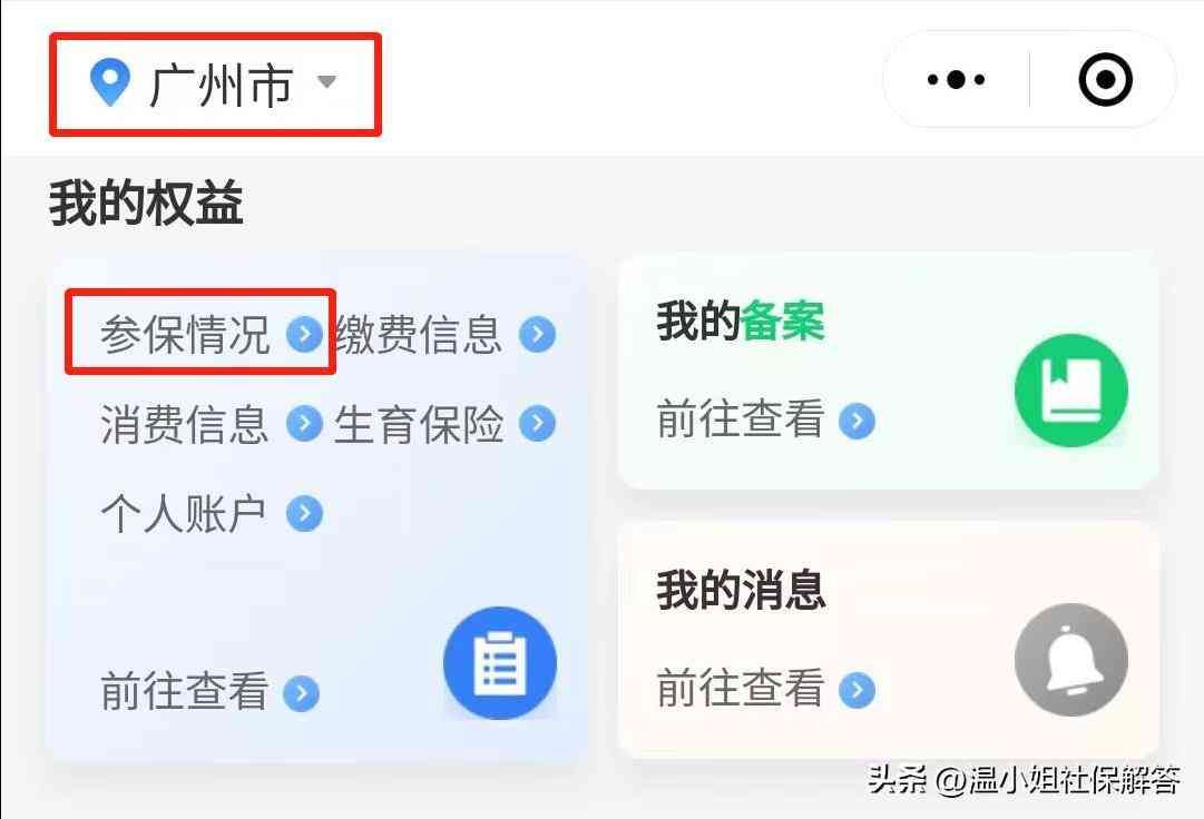 微信搜索“粤医保”小程序→选择需要查询的参保地,点击“参保情况”即可进行查询。