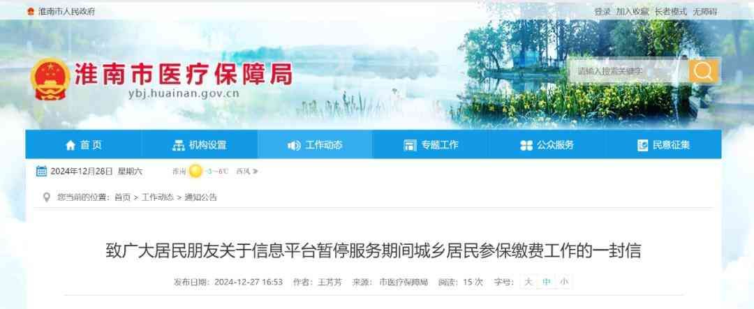 原标题:《致广大居民朋友关于信息平台暂停服务期间城乡居民参保缴费工作的一封信》