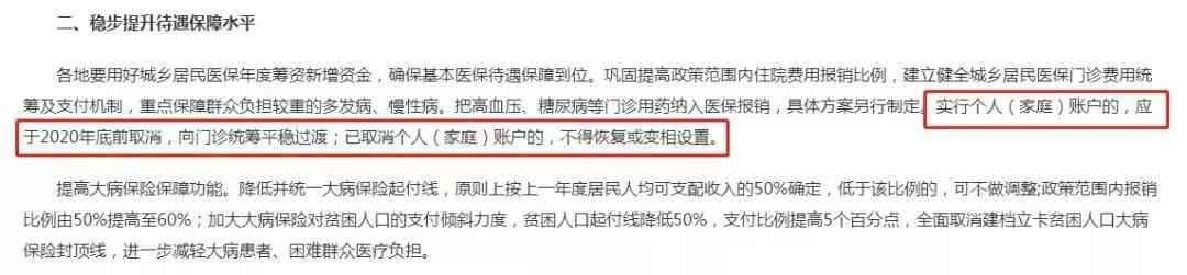 实行个人(家庭)账户的,应于2020年底前取消,向门诊统筹平稳过渡。已取消个人(家庭)账户的,不得恢复或变相设置。