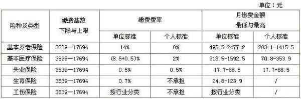 参保单位2019年度社会保险个人缴费基数上限为17694元、下限为3539元。个体工商户、个体劳动者(含灵活就业人员)的个人缴费基数上下限另行发布。