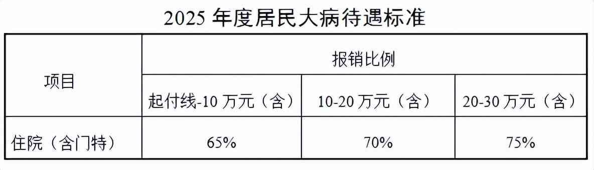 在一个年度内,参保人员患病门(急)诊、住院(含门诊特殊疾病),在基本医疗保险报销后,政策范围内个人负担起付线以上,30万元(含)以下的医疗费用,按规定纳入居民大病保险给付范围。起付线按照上一年度居民人均可支配收入的50%确定。医疗救助对象居民大病保险起付线在普通人群的基础上降低50%,报销比例提高5个百分点,取消封顶线。