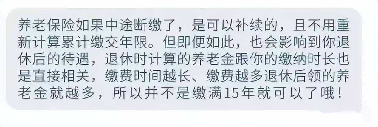 但是养老保险是缴费时间越长最后获得的养老金就越多,如果断缴会影响自己将来的养老金待遇。