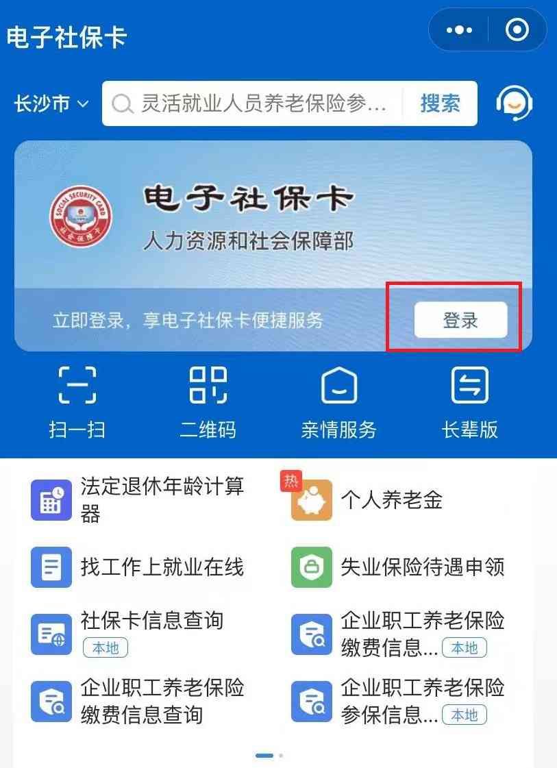 操作步骤:①下载电子社保卡APP或者微信搜索电子社保卡小程序,并点击首页的“登录”。