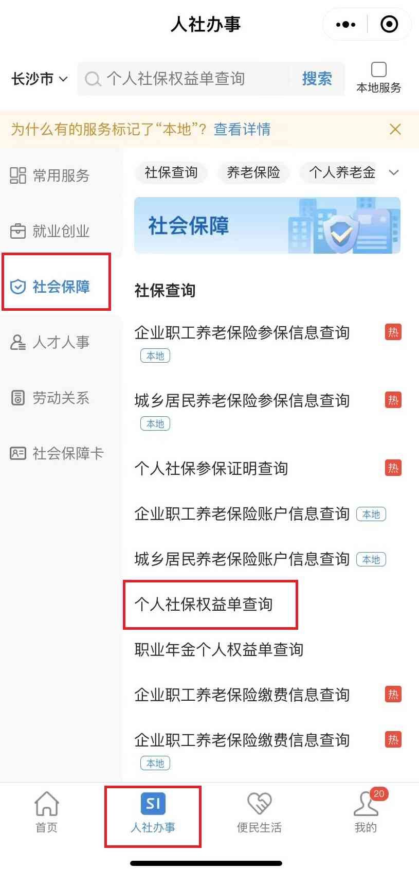 方法二:通过当地的社保服务平台进行查询(智慧人社、长沙(哪个城市就写那个城市的)人社、掌上12333等都可以)