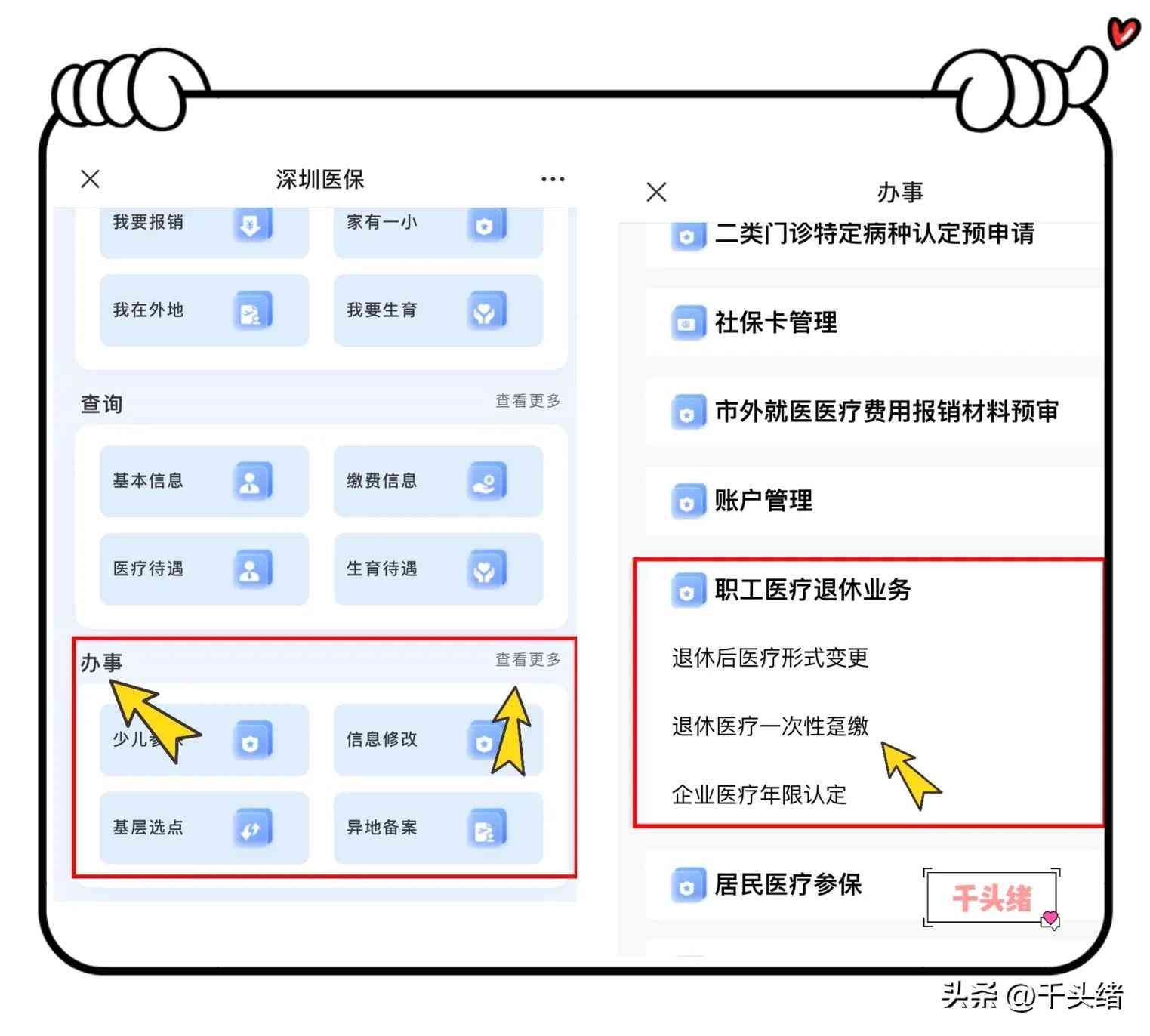 手机微信登录“深圳医保”公众号--掌上政务--掌上办事--刷脸或密码登录后找到”办事”--查看更多--找到“职工医疗退休业务“--点开选择“退休医疗一次性趸交”,依照提示办理便可: