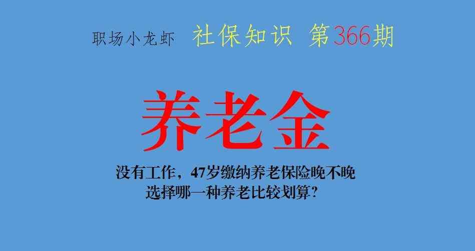 “小龙虾老师,我是女性,现在已经47岁了,现在也没有工作,如果我现在开始缴纳社保晚不晚?还值得嘛?选择哪一种社保比较好?”