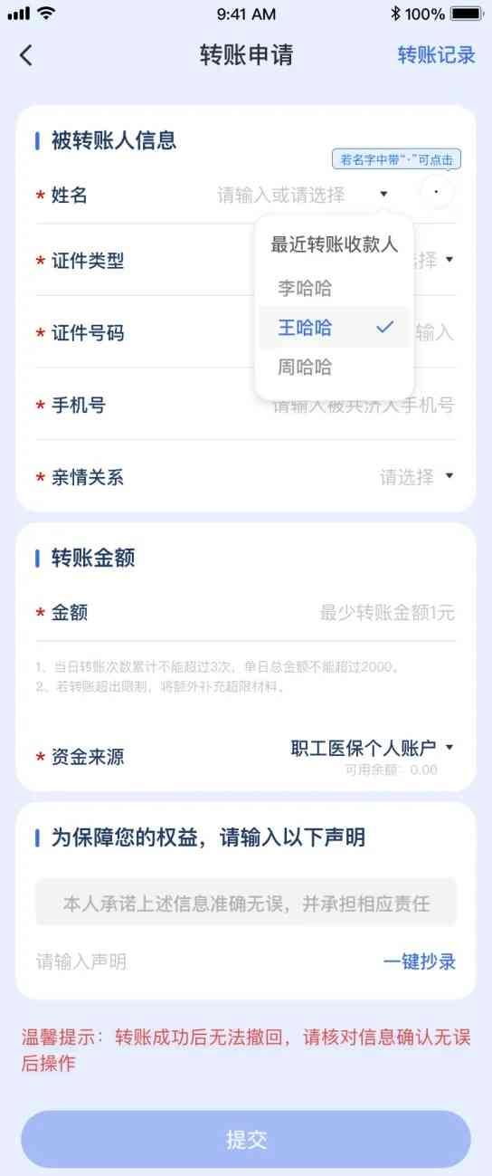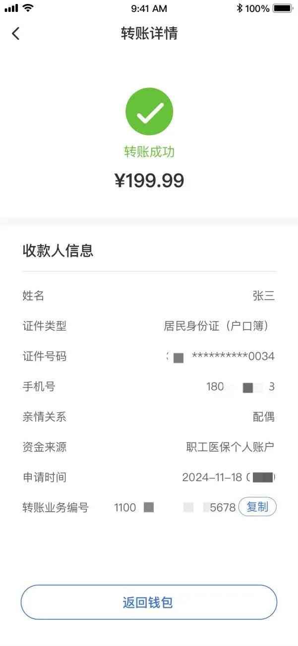 注意,使用“医保钱包”,需要转账人和收款人的地区均开通了“医保钱包”功能,才能进行转账。