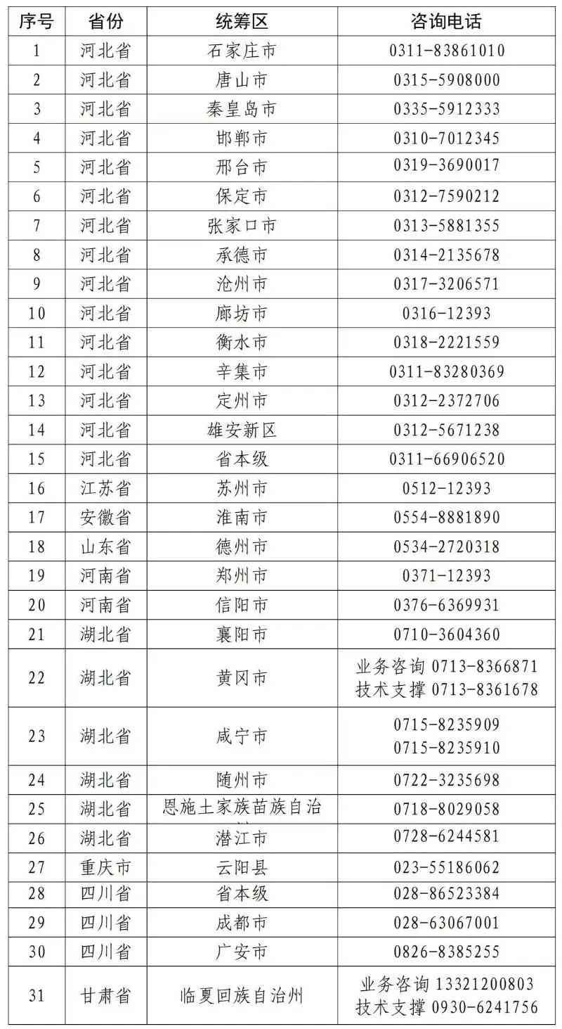 目前,全国已有31个地区(统筹区)已开通个人账户跨省共济使用,包括: