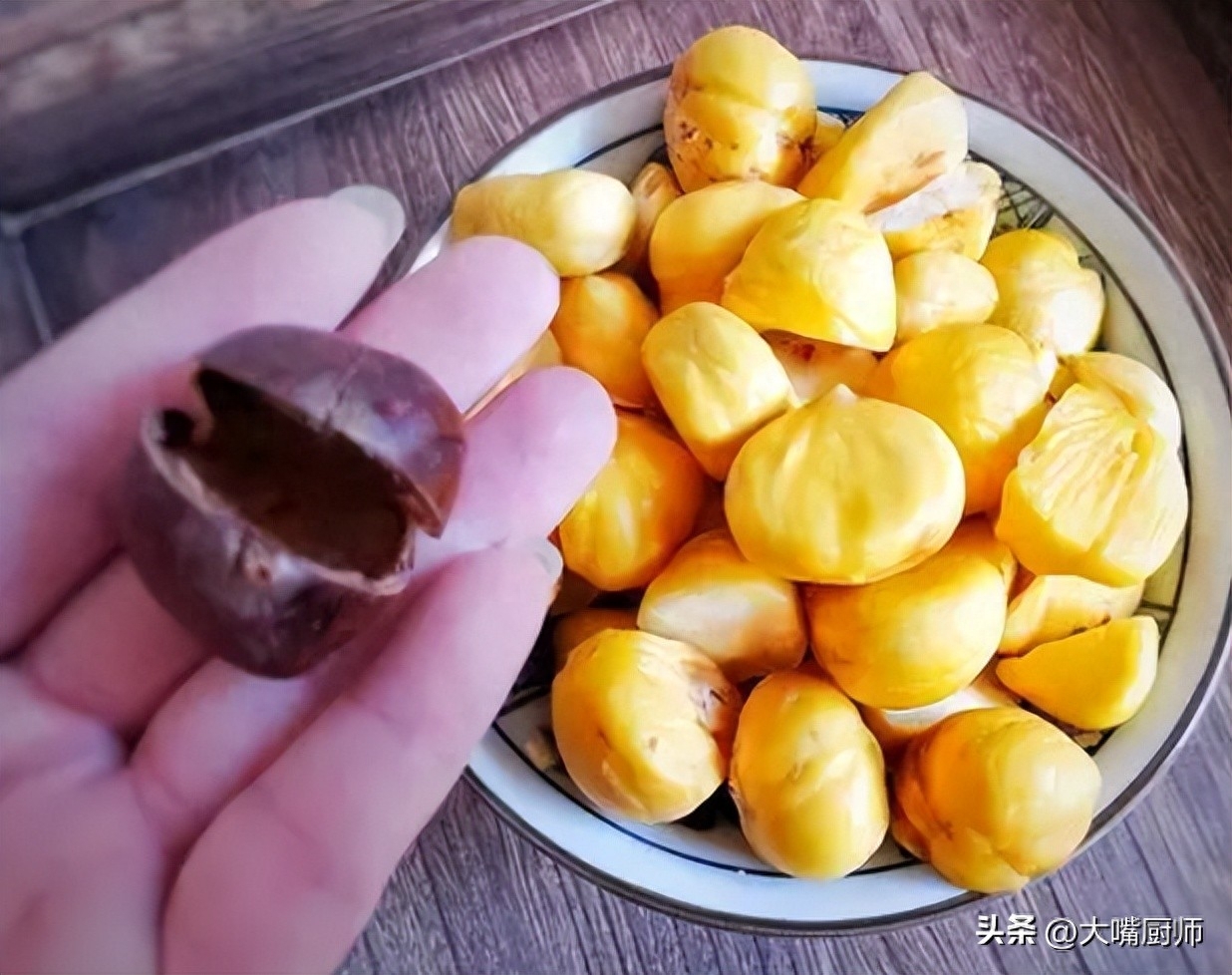 8、这个方法很方便,5秒钟能剥一个板栗,熟练后3秒一个,剥出来的板栗完好无损,和买的板栗仁一模一样,还省钱了呢。