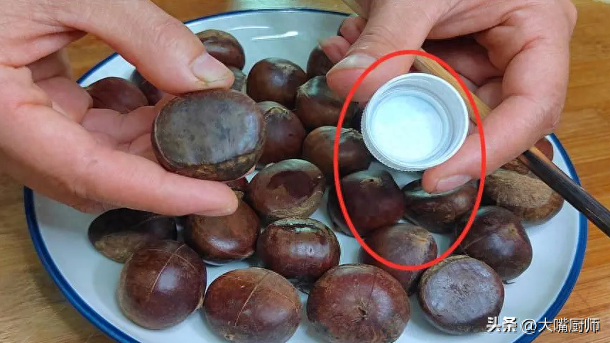 才知道剥板栗壳很简单,放一个瓶盖,3秒剥一个,完好无损不伤肉