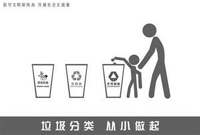 学会给生活垃圾分类。生活垃圾一般分为四大类:可回收垃圾、厨余垃圾、有害垃圾和其他垃圾,垃圾处理分为上门收集、定点收集和定时收集三种。锻炼宝宝独立分类垃圾以及处理垃圾的能力。