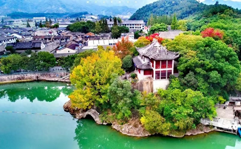 月湖,又名西湖,开凿于唐贞观年间,呈狭长形,宽处似满月,狭处似眉月,故此得名。公园里不仅青山绿水,还有旧居、庙宇、博物馆、美术馆等多种景观,极富江南水乡和地域文化特色。