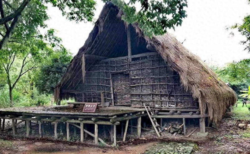 河姆渡遗址,面积达四万平方米,上下叠压着四个文化层,是中国南方新石器时代遗址(约7—5年前),被认为是世界上最早的良渚文化遗址之一,也是中国新石器时代文化的代表之一。