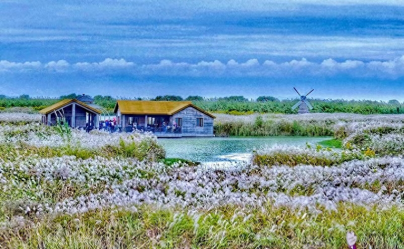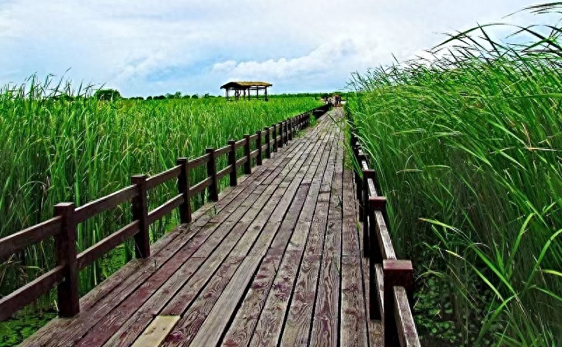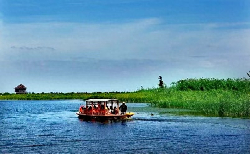 进入湿地公园后,可乘着画舫船畅游,但见浩瀚“草海”呈现眼前,层层叠叠绵延到无限,不知哪里才是它的尽头。神奇的是,这片湿地仿佛没有尽头,越深入里面,大自然的美就越纯粹,徜徉于湿地的河道上,偶尔还能见到湿地上嬉戏的白鹭和鸬鹚。