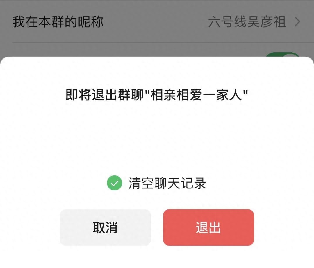 这次,新版本上线了一个新功能:用户可以在退出群聊时,选择是否清空聊天记录。