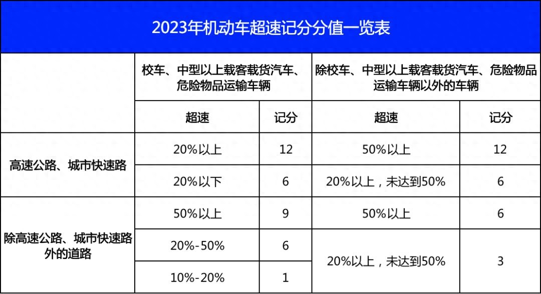 而对于“校车、中型以上载客载货汽车、危险物品运输车辆”,在高速路上超速20%以下,或在普通道路上,超速20%以上未达到50%,都会一次被记6分。