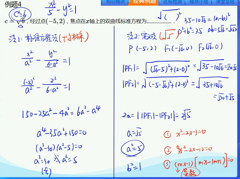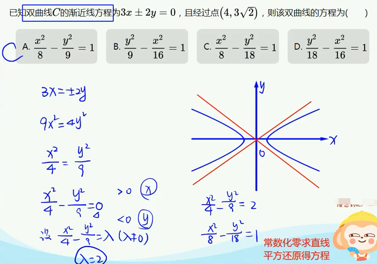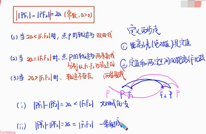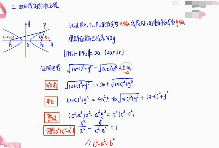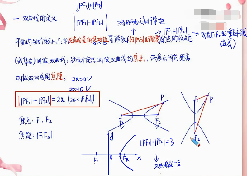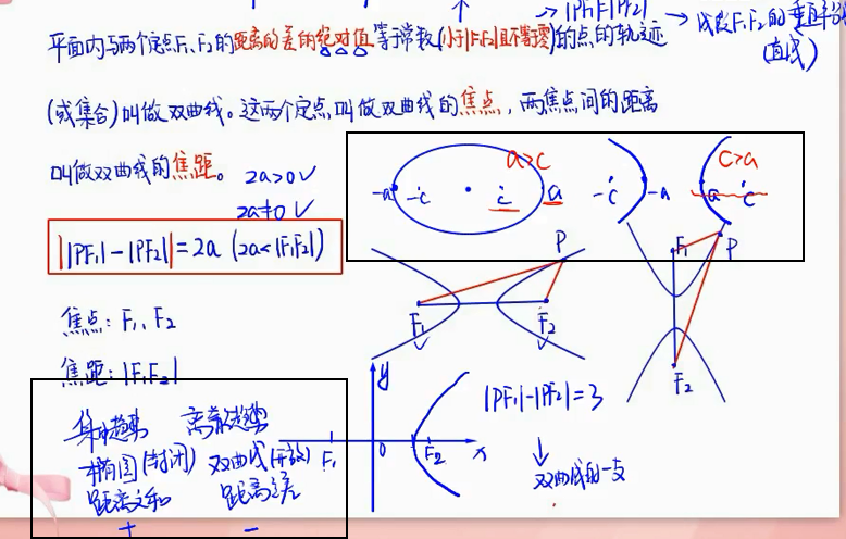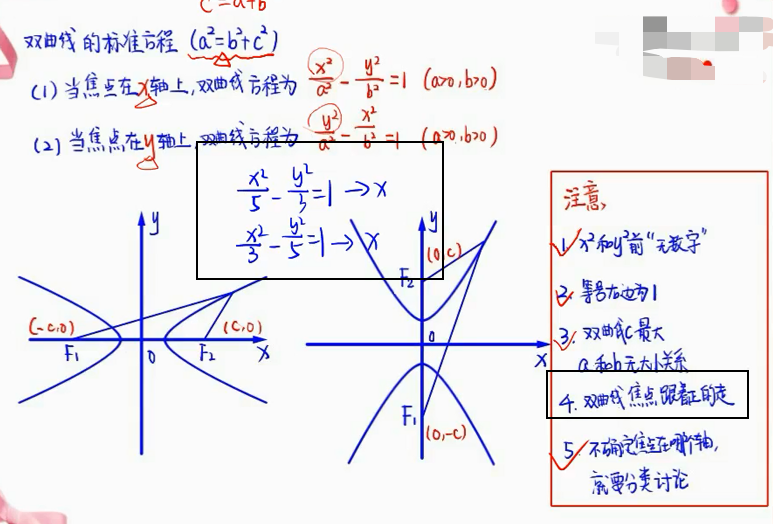 双曲线的五条需要注意的地方:焦点跟着正的走,谁是正值焦点就在哪个轴上。
