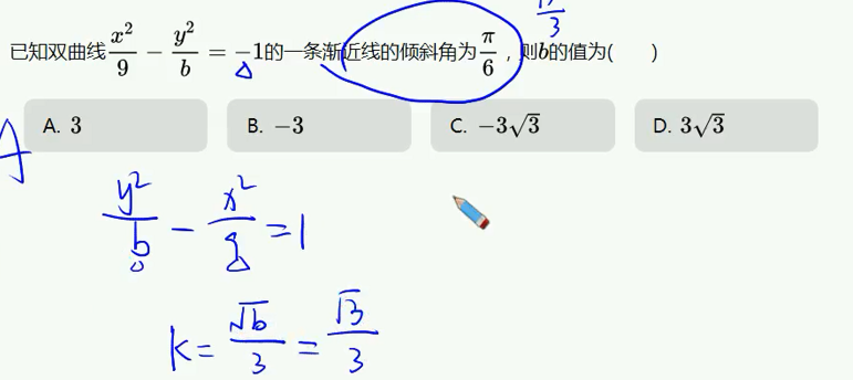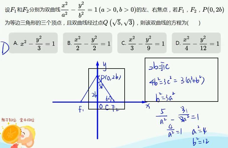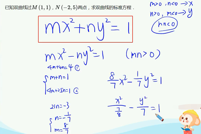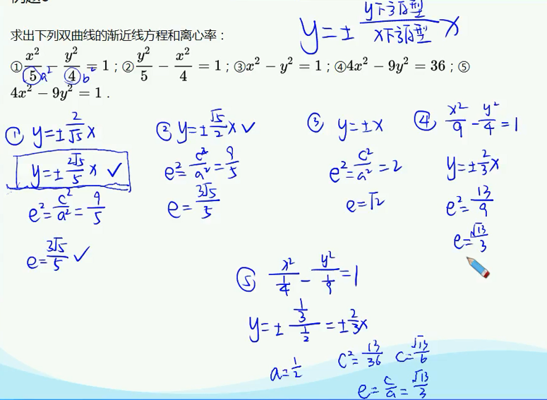 注意:椭圆的话,焦点跟着大的走,而双曲线跟着正的走。