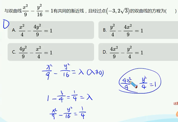 求解:知道A与B的比值,直接让常数等于入。然后代入点坐标,求值。