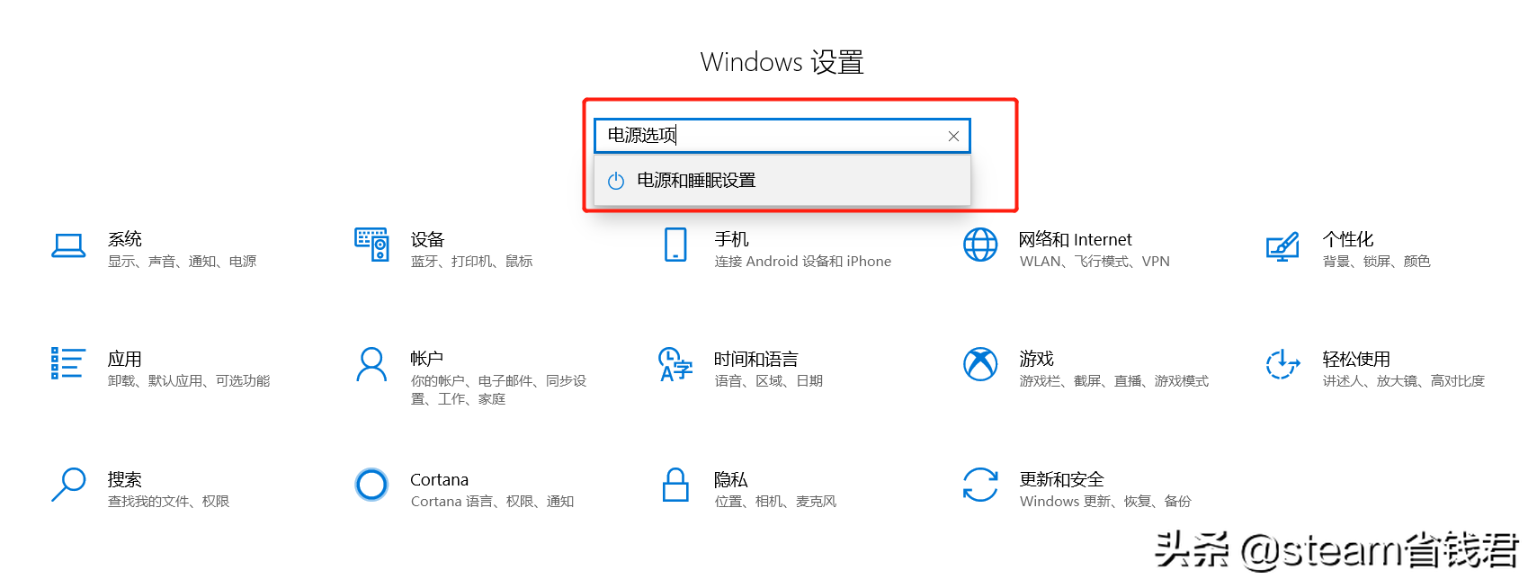 打开windows10的设置页面,找到“电源和睡眠”。