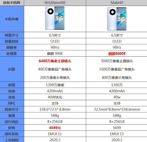 华为mate40e和mate40的区别(华为Mate40E和Mate40哪个好)