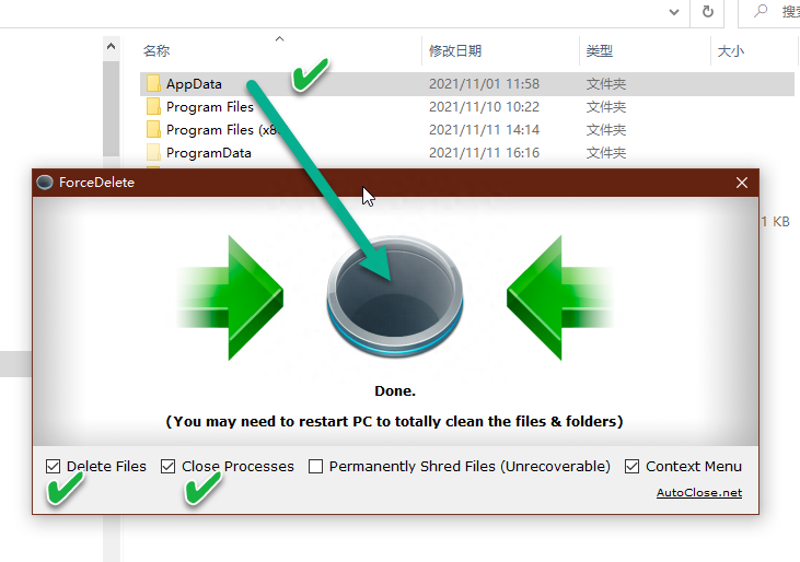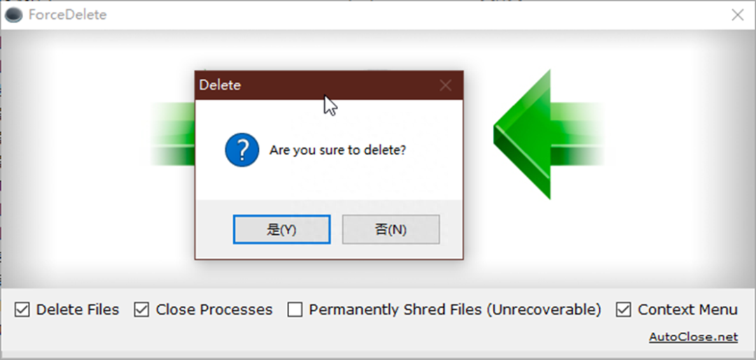 下载并安装(或)运行该软件(安装版下载:https://autoclose.net/down/forcedelete.exe,便携版下载:https://autoclose.net/down/forcedelete.zip)。