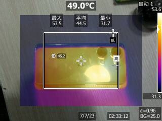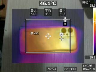 可以看到,Redmi K60的机身平均温度为44.3摄氏度,机身最高温度为51.1摄氏度;真我GT Neo5 SE的机身平均温度为40.0摄氏度,机身最高温度为45.8摄氏度;一加Ace 2V的机身平均温度为44.5摄氏度,机身最高温度为53.5摄氏度;Redmi Note 12T Pro的机身平均温度为43.1摄氏度,机身最高温度为51.3摄氏度。