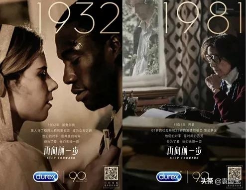 2019年杜蕾斯品牌刚好满90周年,以爱之名的纪念宣传片《再向前一步》博得不少好感,讲述了跨种族、跨年龄、跨生死、跨世俗等不同维度的传奇爱情故事。