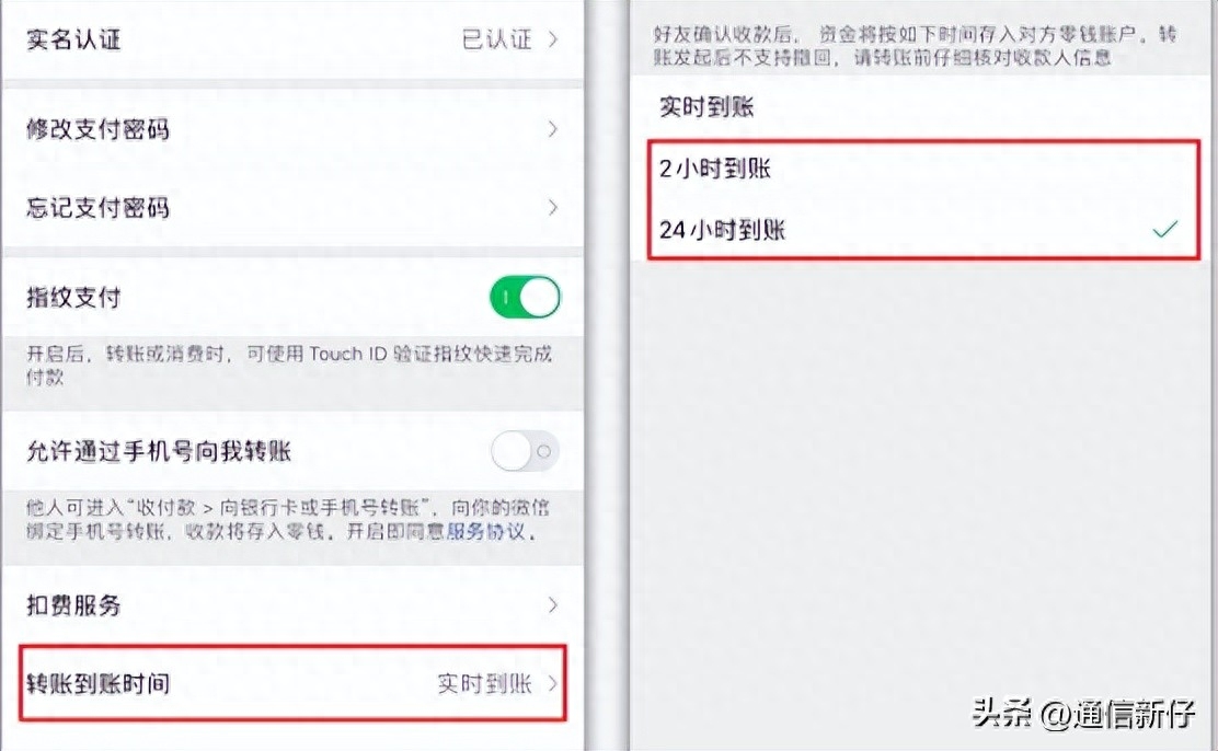 进入支付管理界面,下方有一个【转账到账时间】设置,我们选择2小时或24小时到账,这样当我们被骗,即使对方点击领取了,钱也无法立即到账。