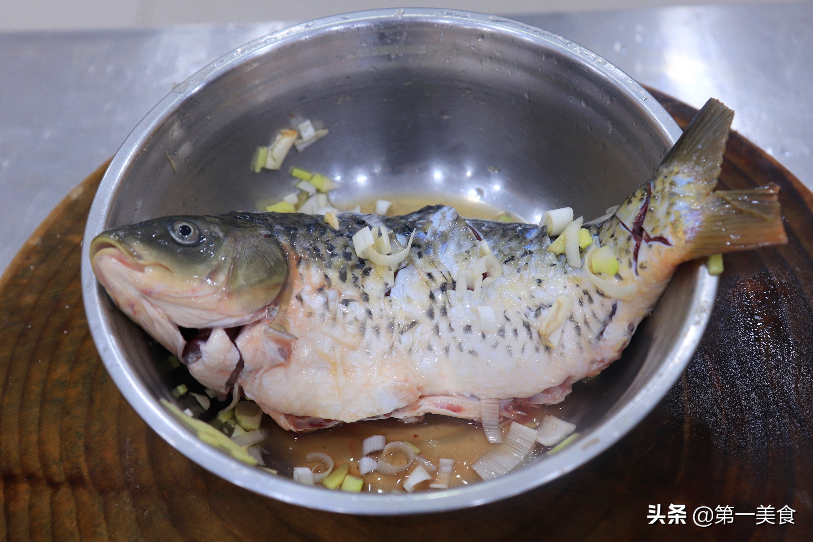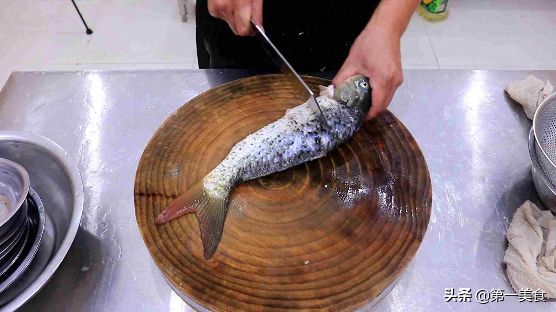 1.首先,我们准备一条新鲜的鲤鱼,先把鱼敲晕剪掉鱼鳍,以免刮鱼鳞的时候扎到手,把鱼鳞刮干净去除内脏,把腹部的血水冲洗干净,鱼身上有一层黏液非常腥也要刮去。