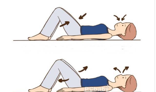 产后3-10天开始,仰卧,两手放平于躯干两侧,将下肢向腹部屈曲,尽量使大腿靠近腹部,小腿贴近臀部,然后伸直腿部放平,如此两腿交互操作。