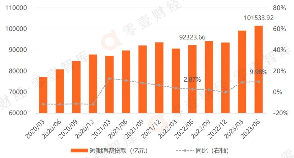 图1:2020年-2023年上半年,我国短期消费贷款数据