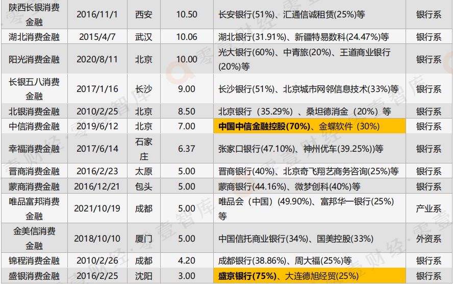 表 1:31家持牌消费金融公司情况(不完全统计)