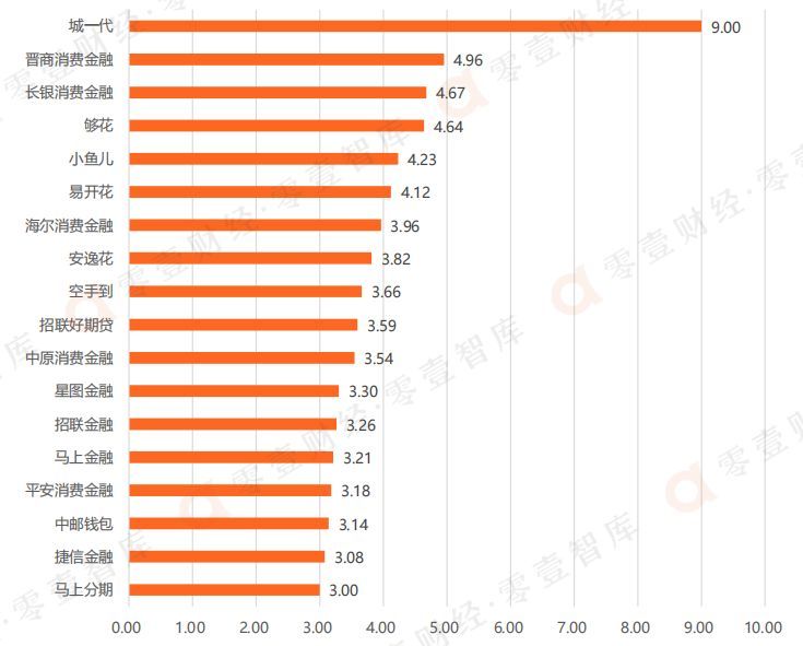 图 6:2023年上半年消费金融公司APP月使用时长评分情况资料零壹智库