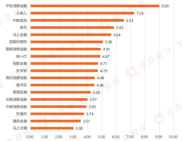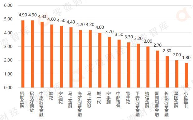 图 4:2023年上半年消费金融公司APP日均活跃用户评分情况资料零壹智库
