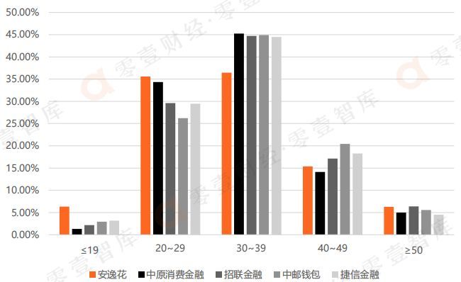 零壹智库截取2023年7月1-31日上述5款活跃度较高的APP数据进行分析,消费金融APP用户的年龄主要分布在20-50岁,累计占比超过9成。其中,年龄区间在20-39的人群对消费金融类应用关注度较高,20-29岁、30-39岁平均占比分别为31.04%、42.72%。40岁以上区间内,随着年龄递增,关注人数呈递减趋势。